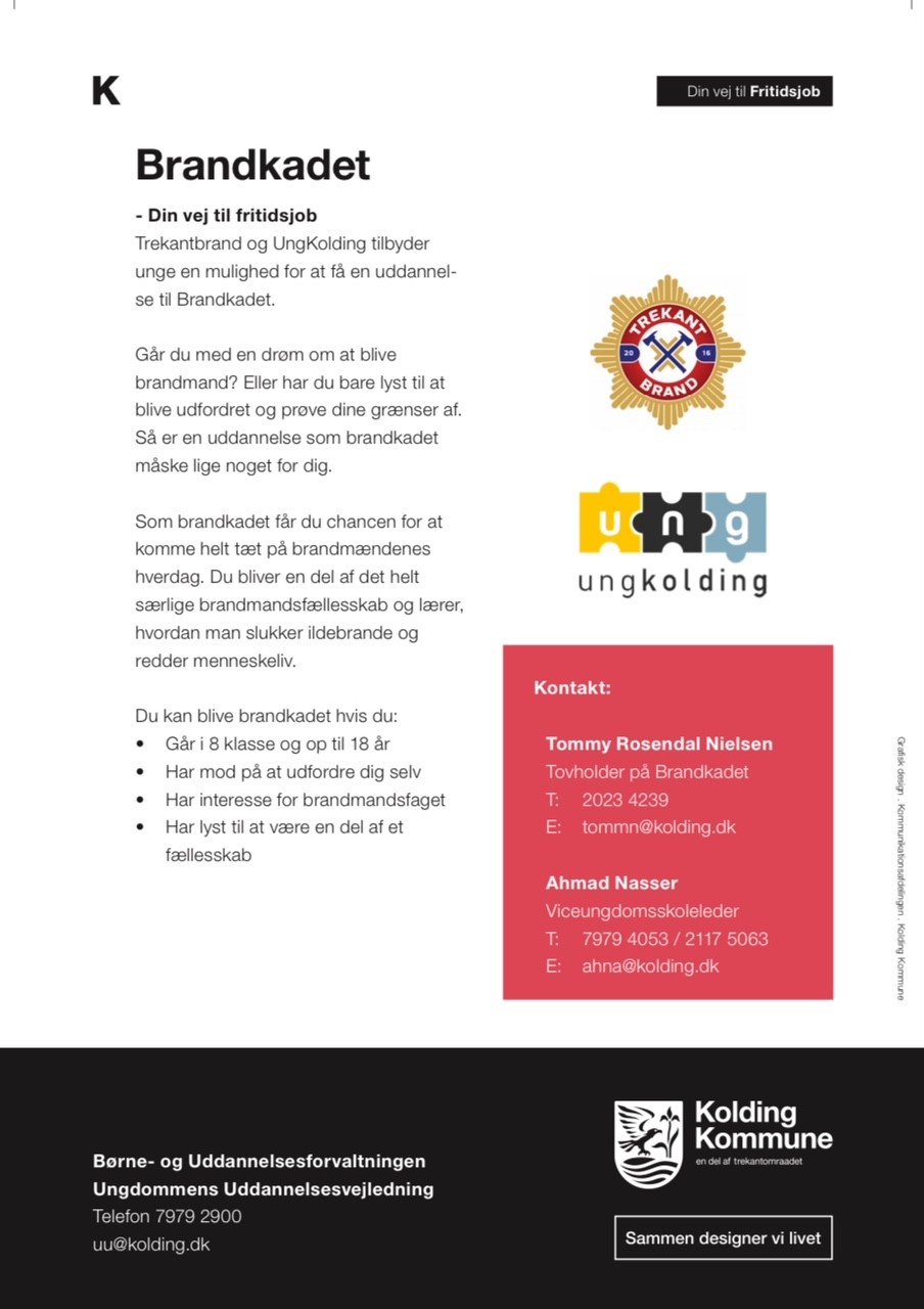 Trekantbrand og UngKolding tilbyder unge en mulighed for at få en uddannelse til Brandkadet.