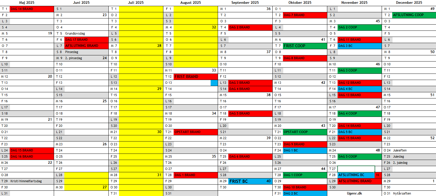 Forløbet starter i uge 36 og kører frem til uge 41. Det kører om