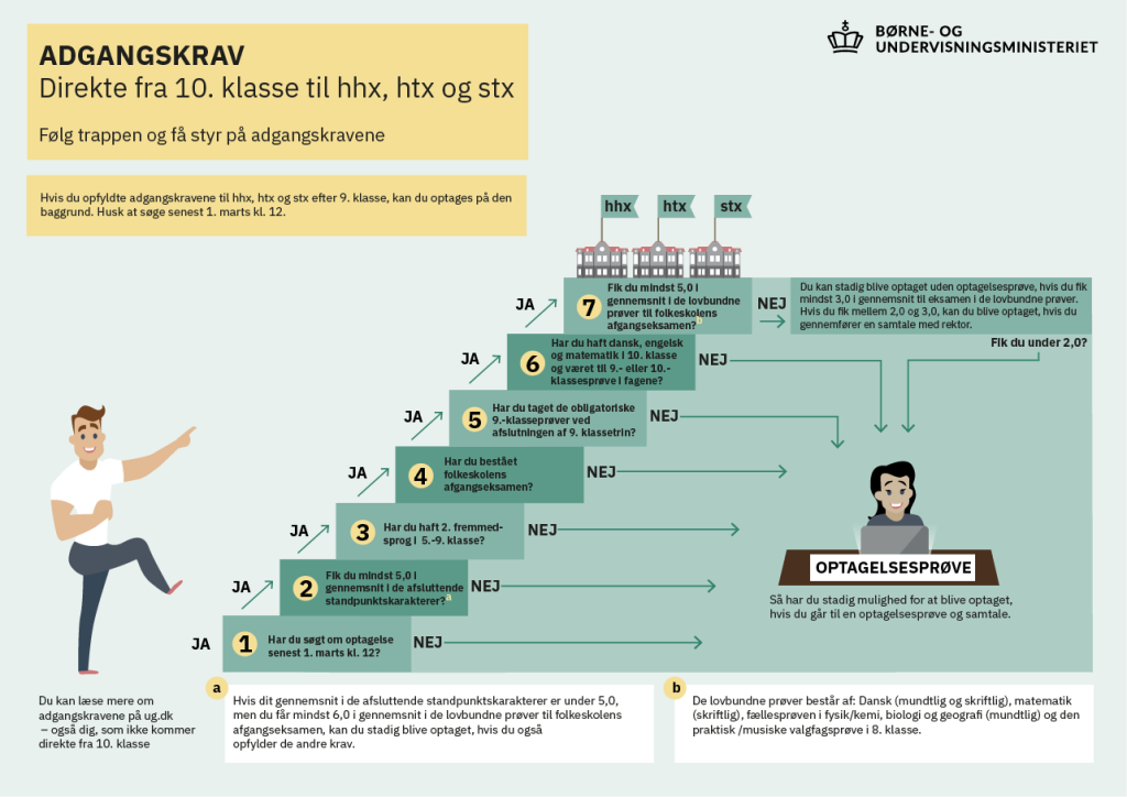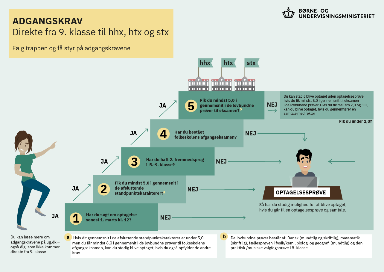 For at blive optaget på stx, htx eller hhx efter 9. klasse skal du opfylde følgende: